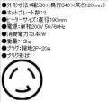 商品名:電気コンロ 2連 単相200V W580×D340×H120