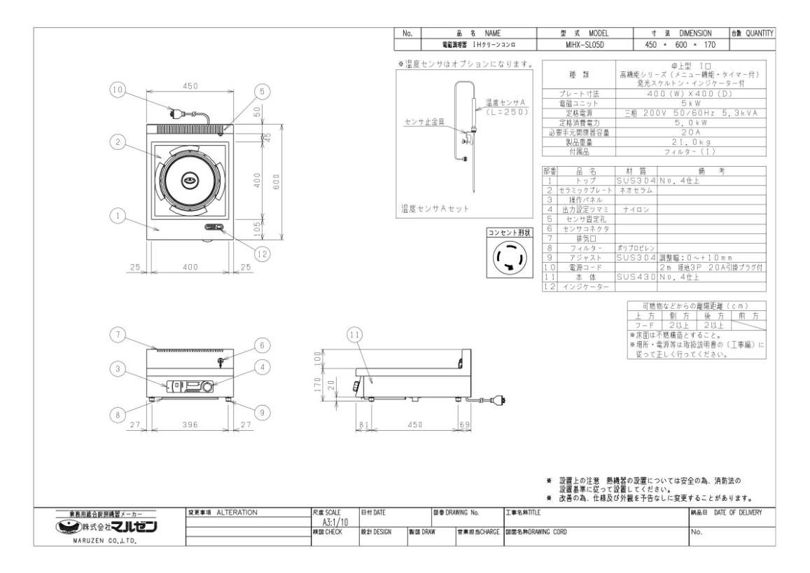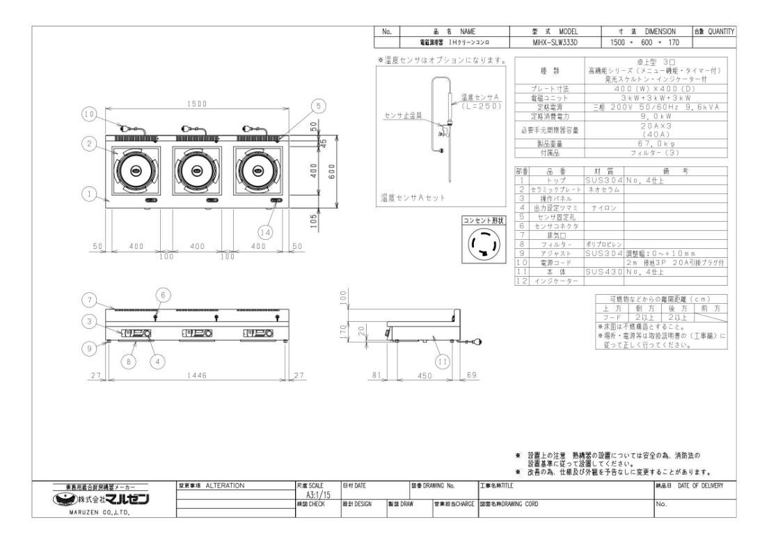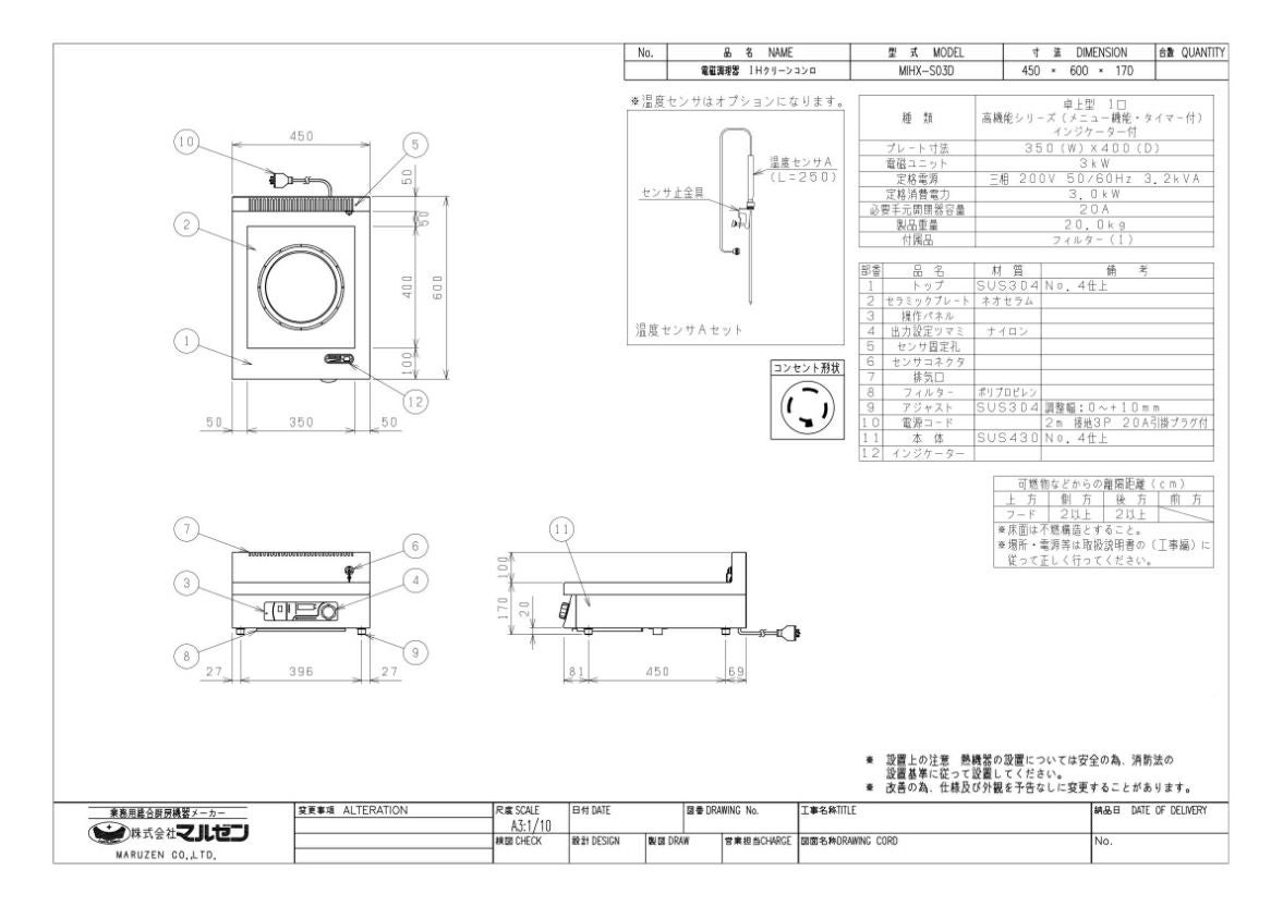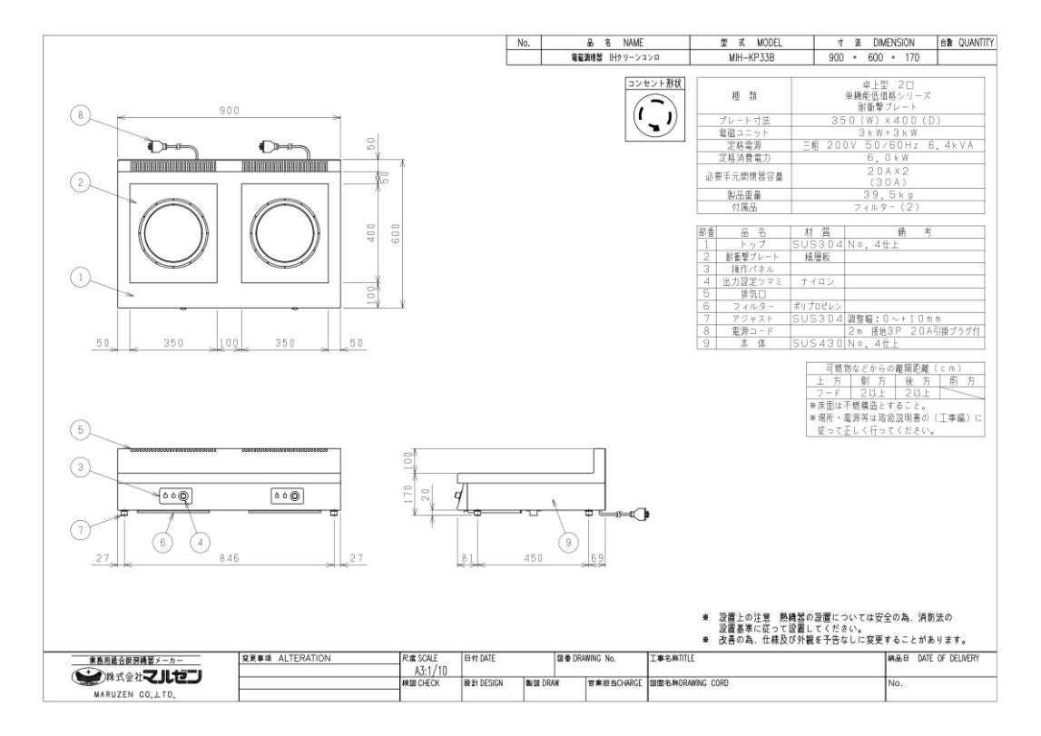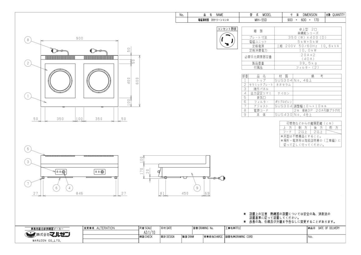 他の画像を見る MIH-05D 【マルゼン】IHクリーンコンロ 幅450×奥行600×高さ170(mm) 三相200V【業務用/新品】【送料無料】 定価 ¥ 423,500 (税込)のところ 販売価格 ¥ 227,411 税込 詳細を見る