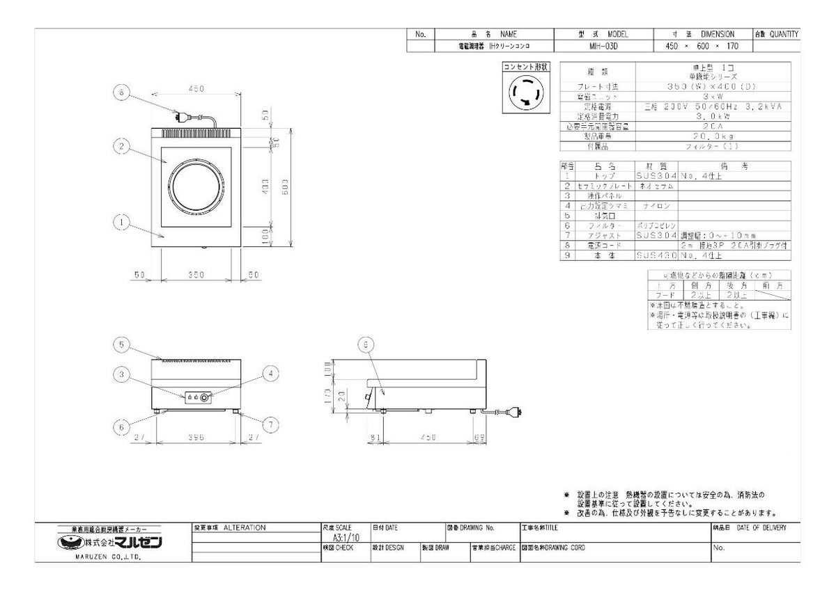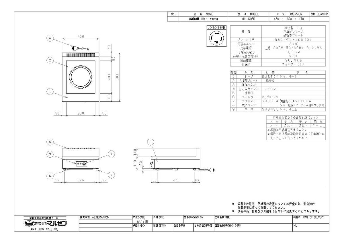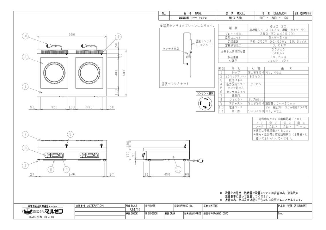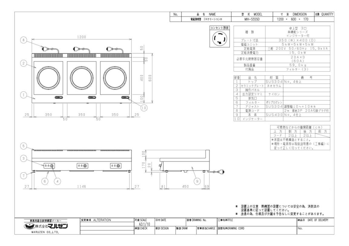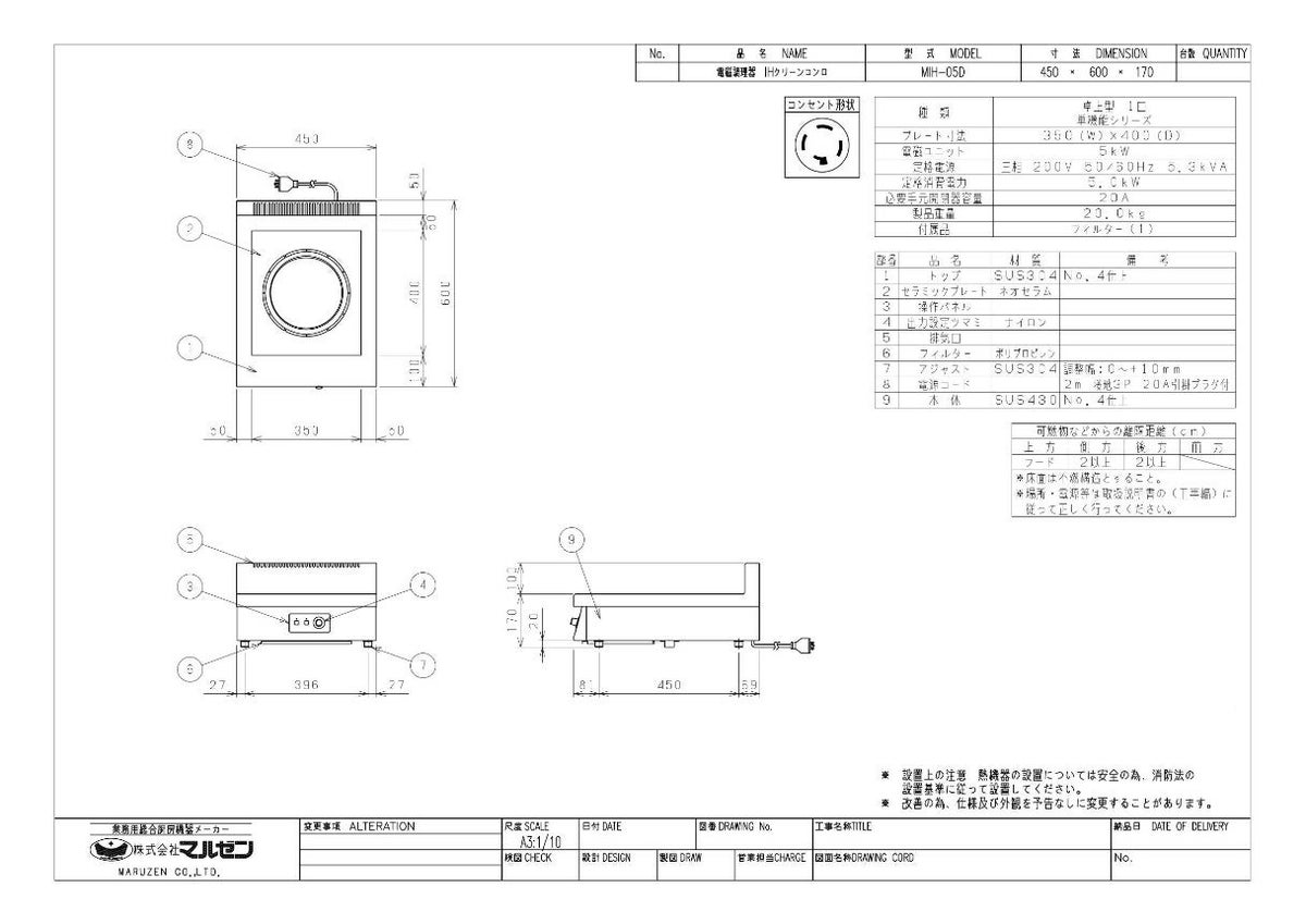 他の画像を見る MIH-05D 【マルゼン】IHクリーンコンロ 幅450×奥行600×高さ170(mm) 三相200V【業務用/新品】【送料無料】 定価 ¥ 423,500 (税込)のところ 販売価格 ¥ 227,411 税込 詳細を見る