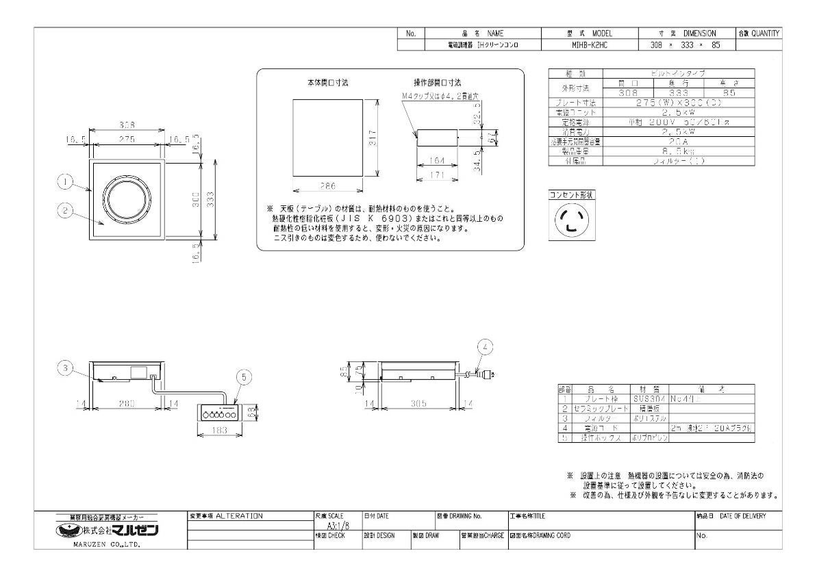 他の画像を見る 【業務用/新品】【マルゼン】IHクリーンコンロ ビルトインタイプ MIHB-K20C 幅308×奥行333×高さ85(mm) 単相200V【送料無料】 定価 ¥ 173,800 (税込)のところ 販売価格 ¥ 95,472 税込