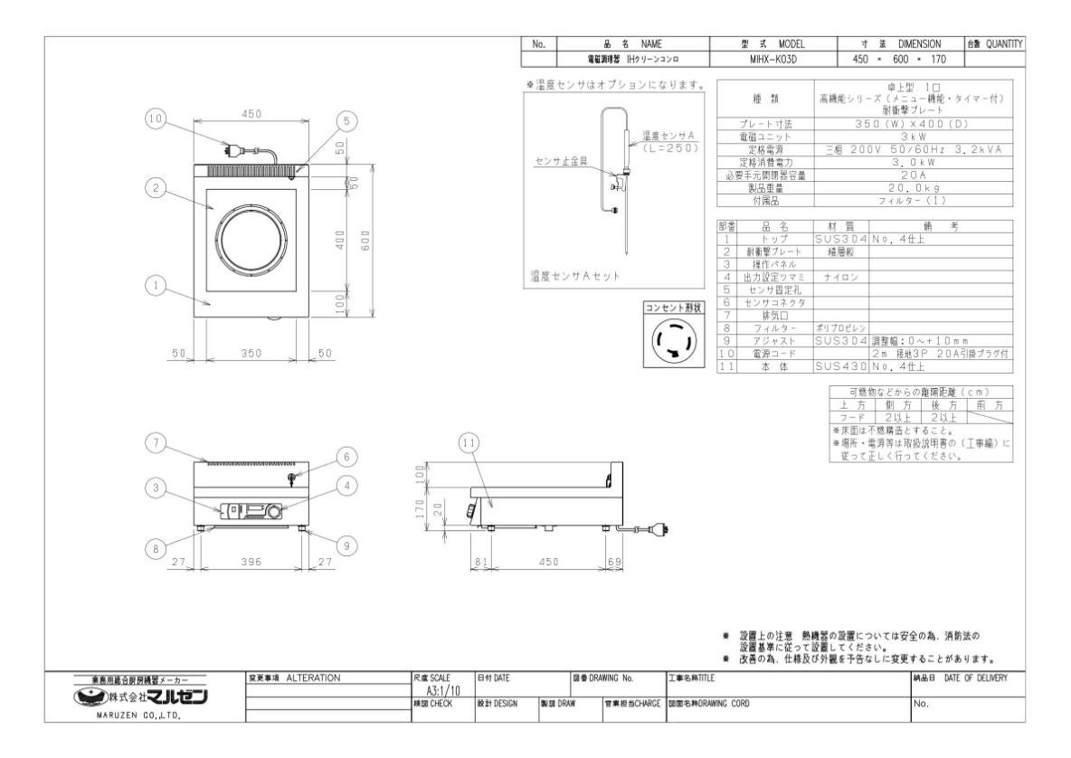 他の画像を見る MIH-K03D 【マルゼン】IHクリーンコンロ 幅450×奥行600×高さ170(mm) 三相200V【業務用/新品】【送料無料】 定価 ¥ 440,000 (税込)のところ 販売価格 ¥ 262,869 税込 詳細を見る