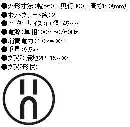 他の画像を見る 【業務用/新品】【ニチワ】電気コンロ 2連 単相100V THP-1W 幅560×奥行300×高さ120(mm)【送料無料】 定価 ¥ 104,500 (税込)のところ 販売価格 ¥ 58,233 税込