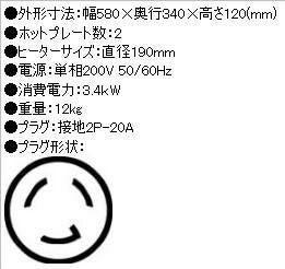 他の画像を見る 【業務用/新品】【ニチワ】電気コンロ 単相200V THP-2 幅300×奥行340×高さ120(mm)【送料無料】 定価 ¥ 66,000 (税込)のところ 販売価格 ¥ 39,589 税込