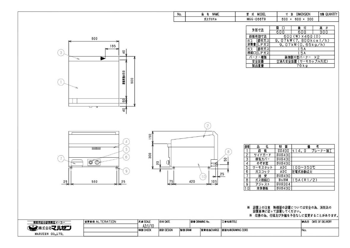 他の画像を見る マルゼン ガスグリドル サーモスタット付 MGG-066TB 都市ガス(15A)/プロパンガス(LPG) 幅600×奥行600×高さ300mm【業務用】【送料無料】 定価 ¥ 272,800 (税込)のところ 販売価格 ¥ 146,927 税込 詳細を見る