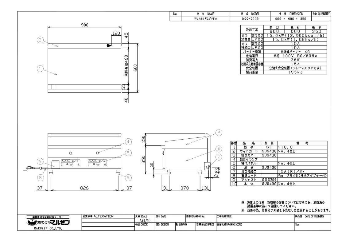 他の画像を見る 【業務用/新品】【マルゼン】ガスグリドル デリカ向け MGG-D096 幅900×奥行600×高さ350(mm) 単相100V 50/60Hz【送料無料】 定価 ¥ 690,800 (税込)のところ 販売価格 ¥ 398,047 税込 詳細を見る
