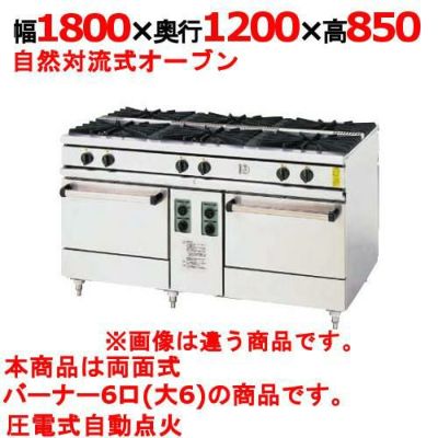 ■ 商品概要 ■ | 商品名 | 両面ガスレンジ | 外形寸法 | 幅1800×奥行1200×高さ850(mm) | メーカー | コメットカトウ | 型式 | XY-18126 | 電源 | - | 消費電力 | - | コンセントプラグ | - | 内寸法/内容積 | - | ガス消費量 | ガス消費量:13Aガス 143kW(123,200kcal/h) LPガス 140kW(10.0kg/h) | ガス接続口 | 25A×2 | 重量 | 464kg | 点火方式 | 圧電点火方式 | オーブン加熱方式 | 自然対流 | 付属品 | 棚網2、オーブン天板2 | 特記事項 | トップバーナー個数:2重バーナ 直径180(15,000kcal/h) 6個 オーブンサーモ付 | |