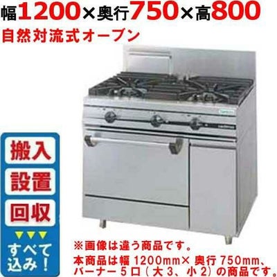 トップバーナφ190×3・φ90×2、使用最大鍋寸法(径)(mm)φ190×420・φ90×280、オーブン数:1、JIA認証:○