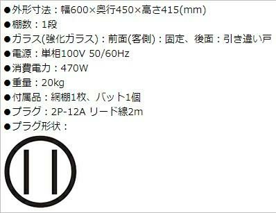 他の画像を見る 【業務用/新品】 ニチワ 電気遠赤外線ホットショーケース 後面引き違い戸 XSC-62 幅600×奥行300×高さ415mm 【送料無料】 定価 ¥ 236,500 (税込)のところ 販売価格 ¥ 115,680 税込