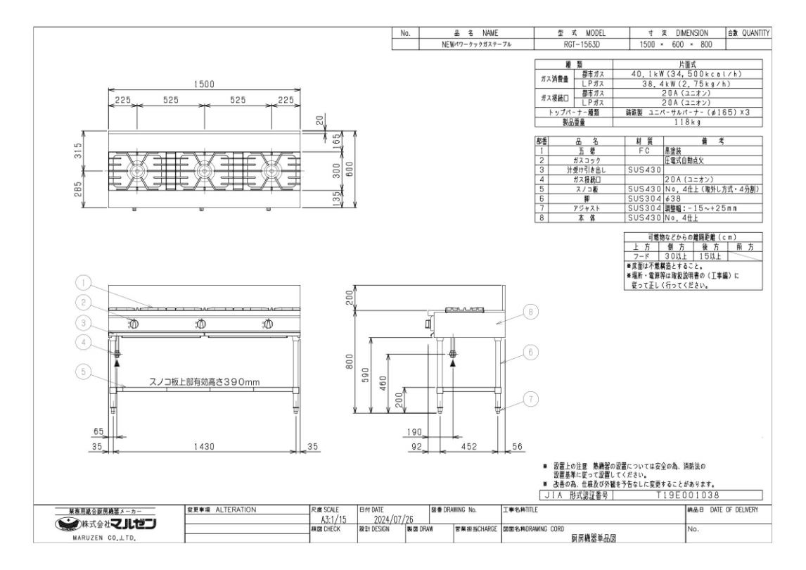 他の画像を見る 【業務用/新品】【タニコー】ガステーブル 3口 【ウルティモシリーズ】TGTA-1530A 幅1500×奥行750×高さ800(mm)【送料無料】 定価 ¥ 385,000 (税込)のところ 販売価格 ¥ 265,650 税込 完売いたしました 詳細を見る