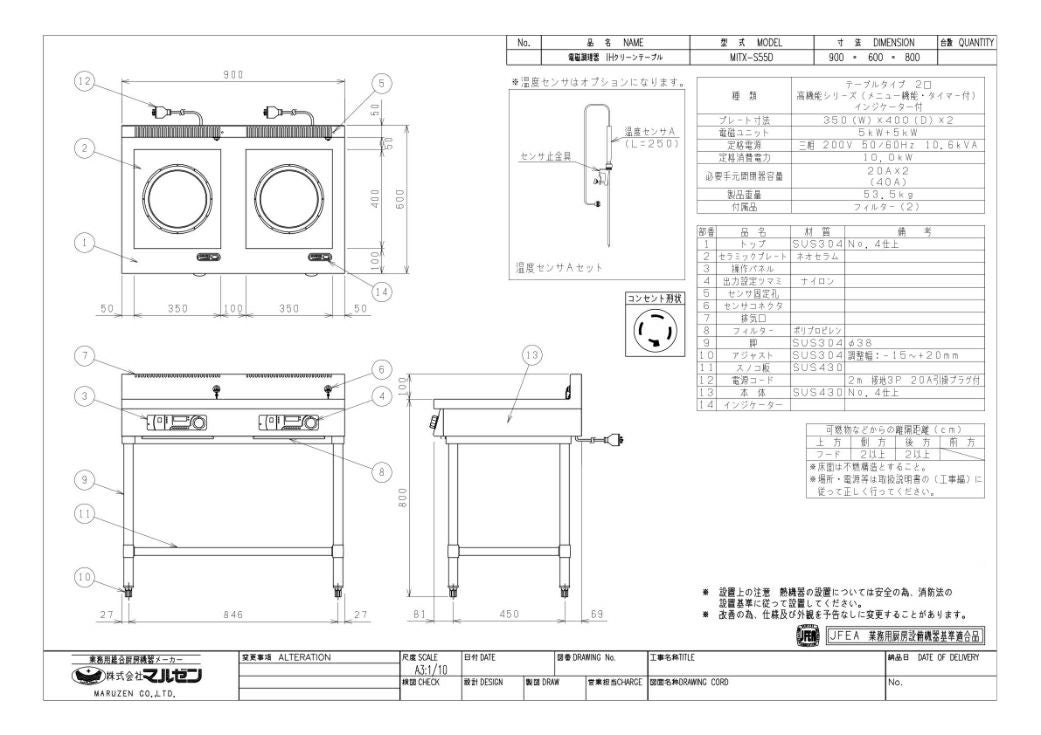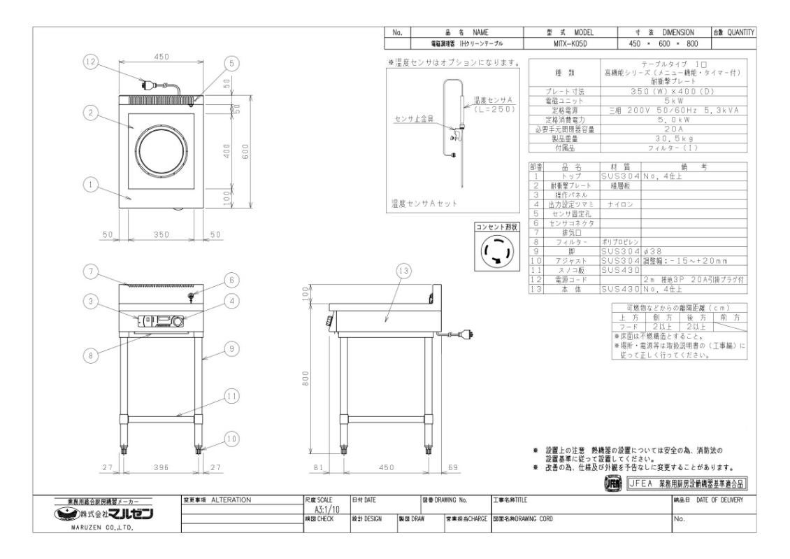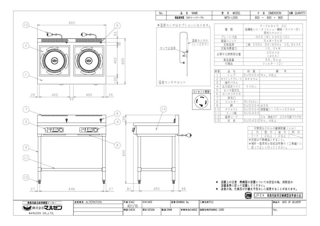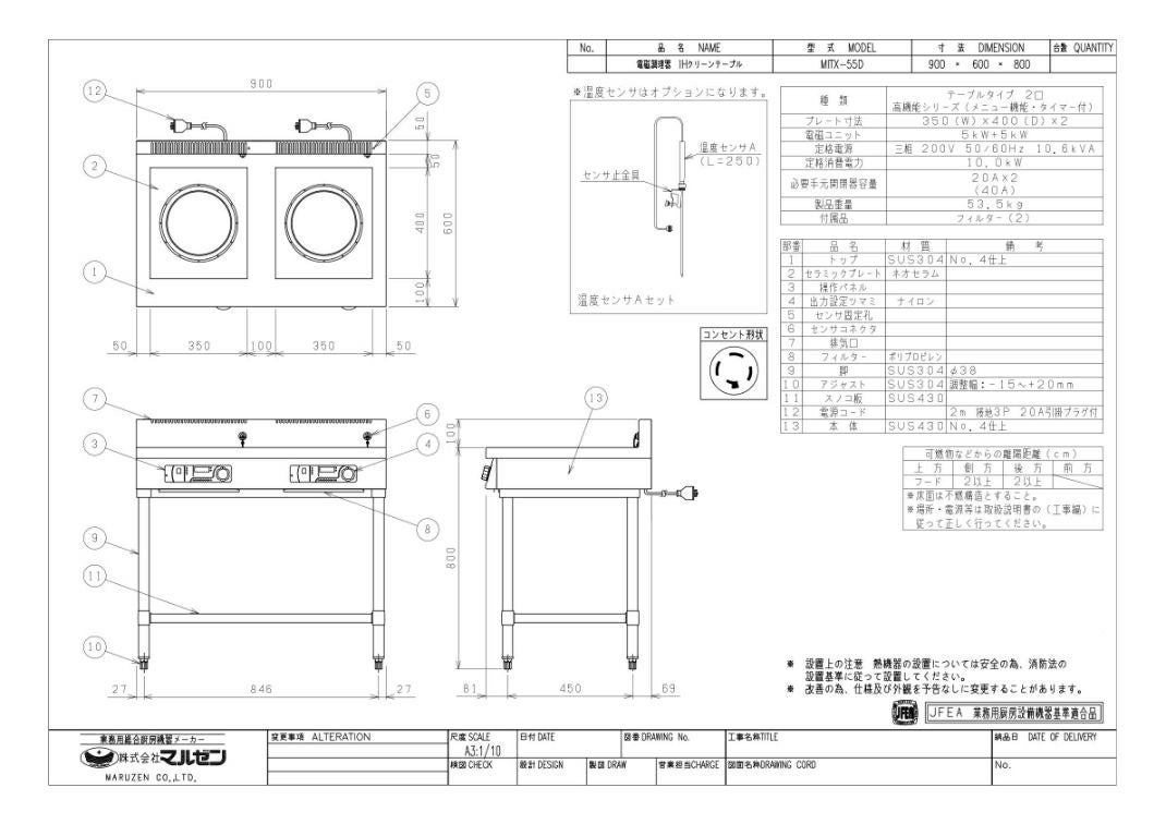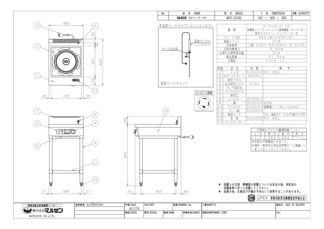 他の画像を見る 【業務用/新品】【マルゼン】IHテーブル MITX-K03D 幅450×奥行600×高さ800(mm) 三相200V【送料無料】 定価 ¥ 493,900 (税込)のところ 販売価格 ¥ 289,075 税込
