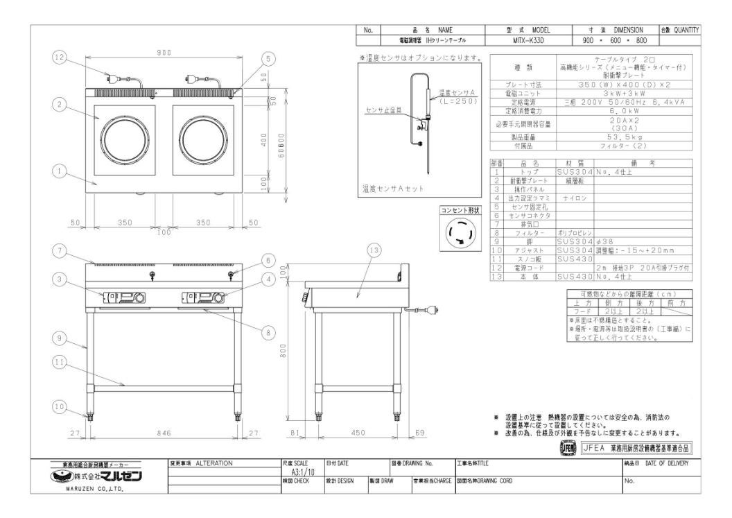 他の画像を見る 【業務用/新品】【マルゼン】IHテーブル MITX-K33D 幅900×奥行600×高さ800(mm) 三相200V【送料無料】 定価 ¥ 918,500 (税込)のところ 販売価格 ¥ 527,660 税込 詳細を見る