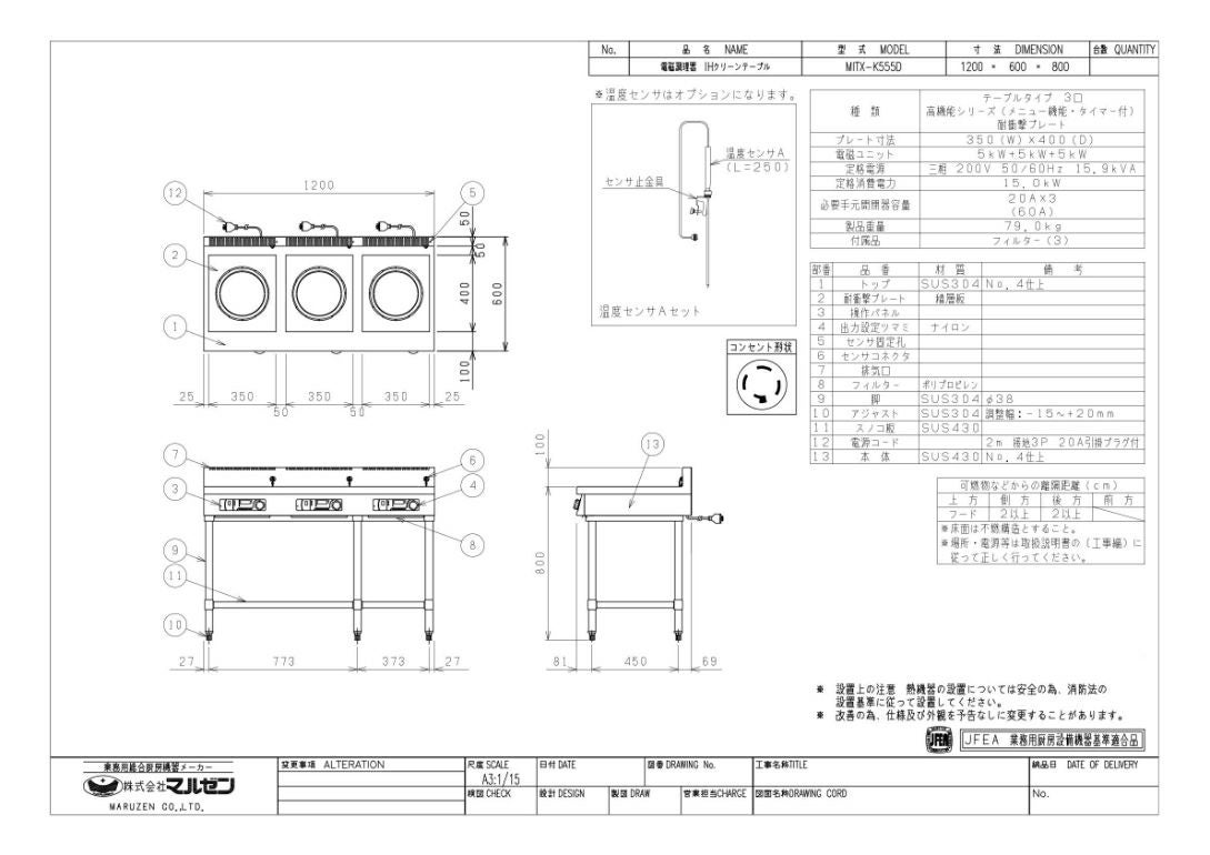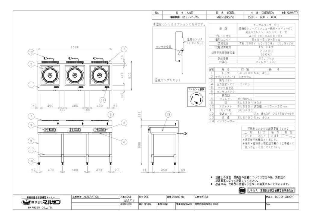 他の画像を見る 【業務用/新品】【マルゼン】IHテーブル MITX-K555D 幅1200×奥行600×高さ800(mm) 三相200V【送料無料】 定価 ¥ 1,347,500 (税込)のところ 販売価格 ¥ 773,400 税込 詳細を見る