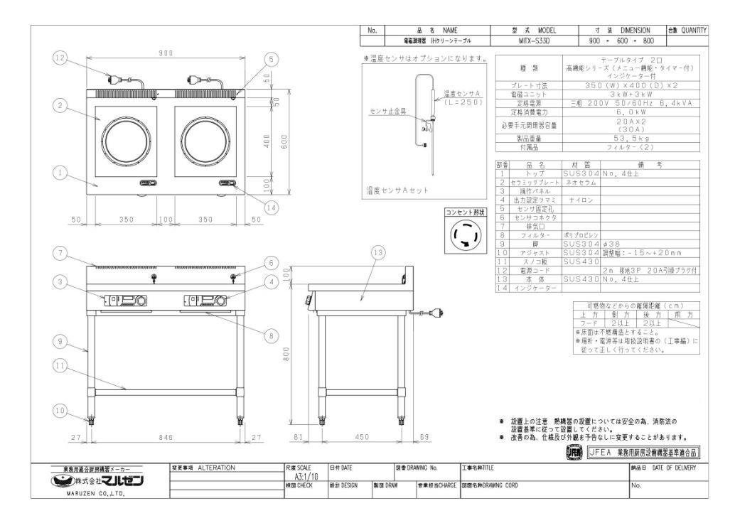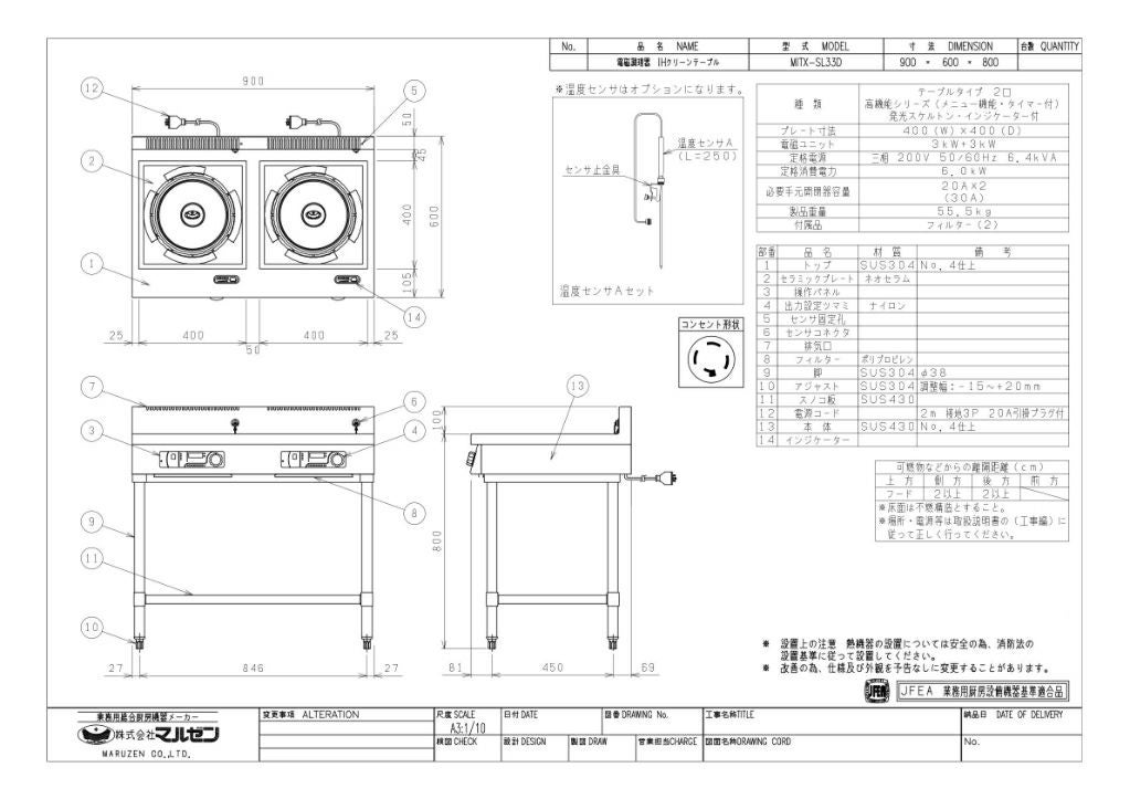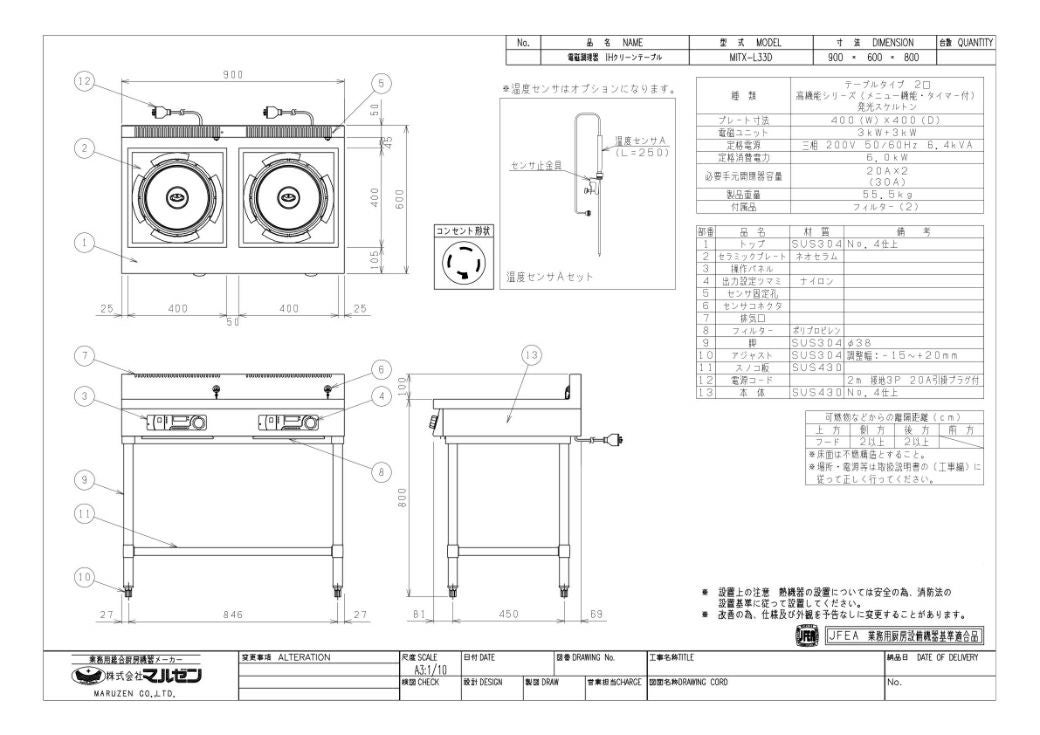 他の画像を見る 【業務用/新品】【マルゼン】IHテーブル MITX-L33D 幅900×奥行600×高さ800(mm) 三相200V【送料無料】 定価 ¥ 995,500 (税込)のところ 販売価格 ¥ 571,770 税込 詳細を見る