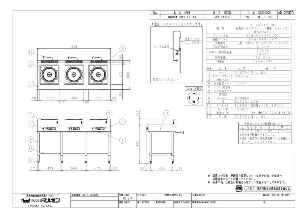 他の画像を見る 【業務用/新品】【マルゼン】IHテーブル MITX-LW333D 幅1500×奥行600×高さ800(mm) 三相200V【送料無料】 定価 ¥ 1,464,100 (税込)のところ 販売価格 ¥ 840,280 税込 詳細を見る