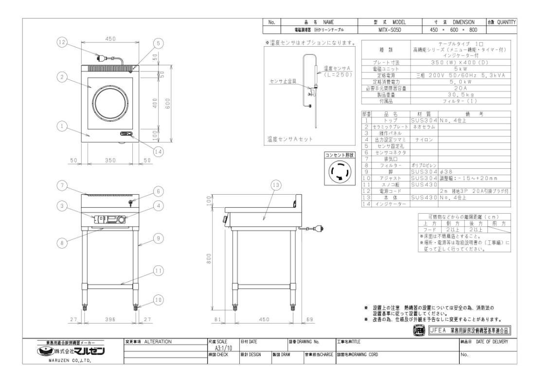 他の画像を見る 【業務用/新品】【マルゼン】IHテーブル インジケーター付 MITX-S05D 幅450×奥行600×高さ800(mm) 三相200V【送料無料】 定価 ¥ 504,900 (税込)のところ 販売価格 ¥ 295,548 税込