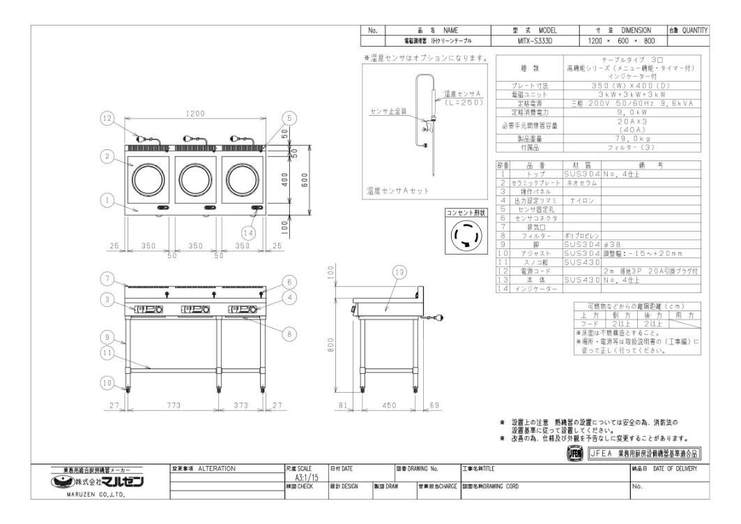 他の画像を見る 【業務用/新品】【マルゼン】IHテーブル MITX-K333D 幅1200×奥行600×高さ800(mm) 三相200V【送料無料】 定価 ¥ 1,347,500 (税込)のところ 販売価格 ¥ 773,400 税込 詳細を見る