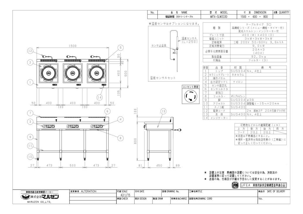 他の画像を見る 【業務用/新品】【マルゼン】IHテーブル インジケーター付 MITX-SLW333D 幅1500×奥行600×高さ800(mm) 三相200V【送料無料】 定価 ¥ 1,546,600 (税込)のところ 販売価格 ¥ 887,580 税込 詳細を見る