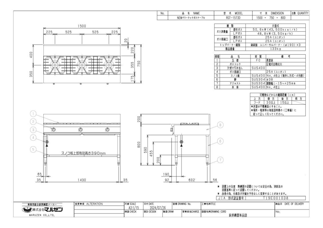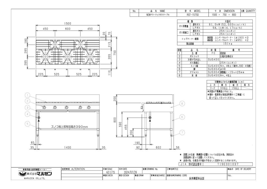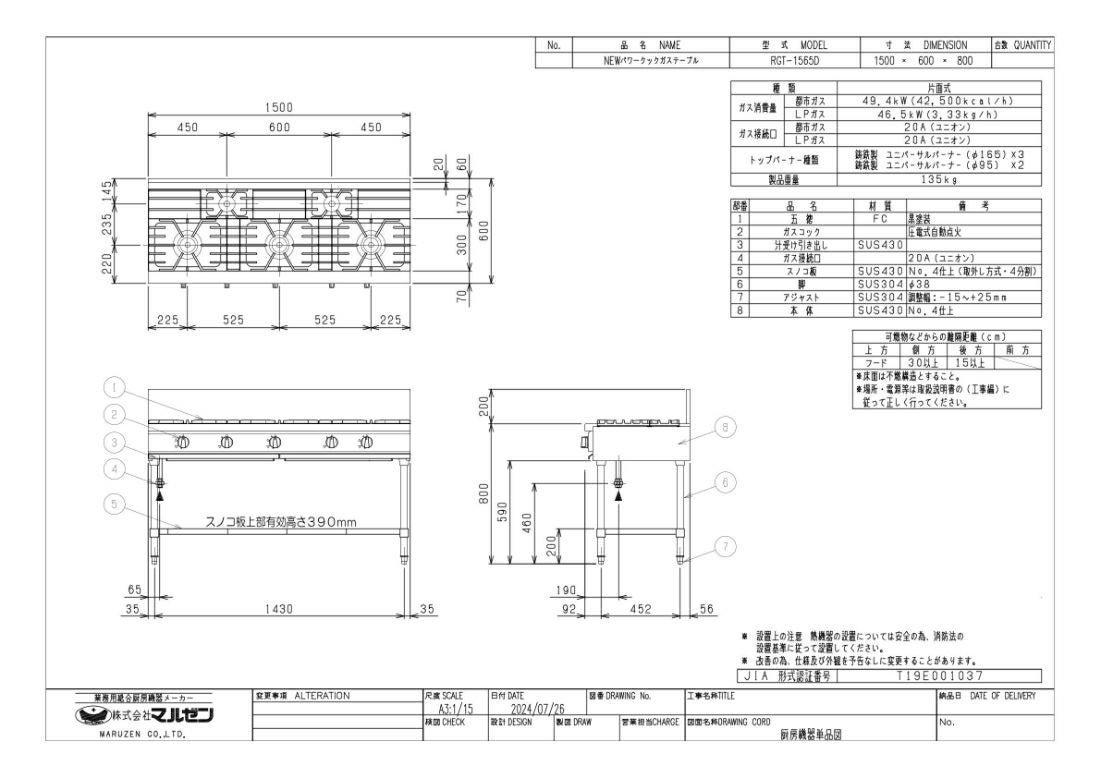 他の画像を見る 【業務用/新品】【マルゼン】ガステーブル 3口 RGT-1573D (旧型式RGT-1573C ) 幅1500×奥行750×高さ800(mm)【送料無料】 定価 ¥ 376,200 (税込)のところ 販売価格 ¥ 203,214 税込 詳細を見る