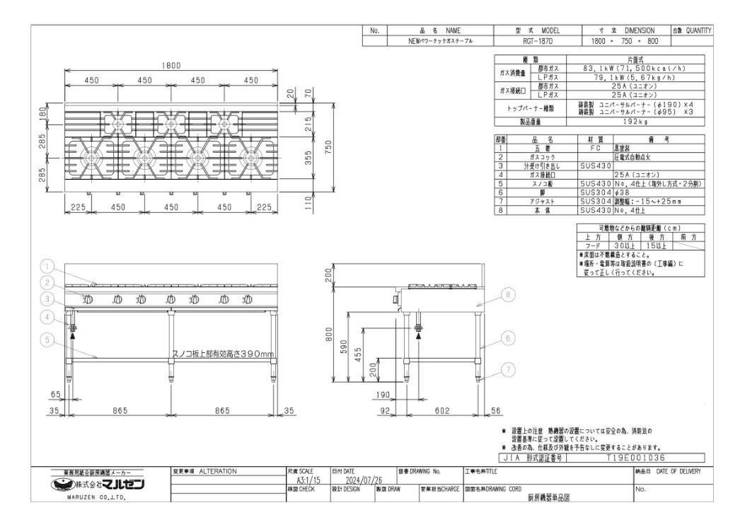 他の画像を見る 【業務用/新品】【マルゼン】ガステーブル 8口 NEWパワークック RGT-1812D (旧型式RGT-1812C) 幅1800×奥行750×高さ800(mm)【送料無料】 定価 ¥ 795,300 (税込)のところ 販売価格 ¥ 422,796 税込 詳細を見る