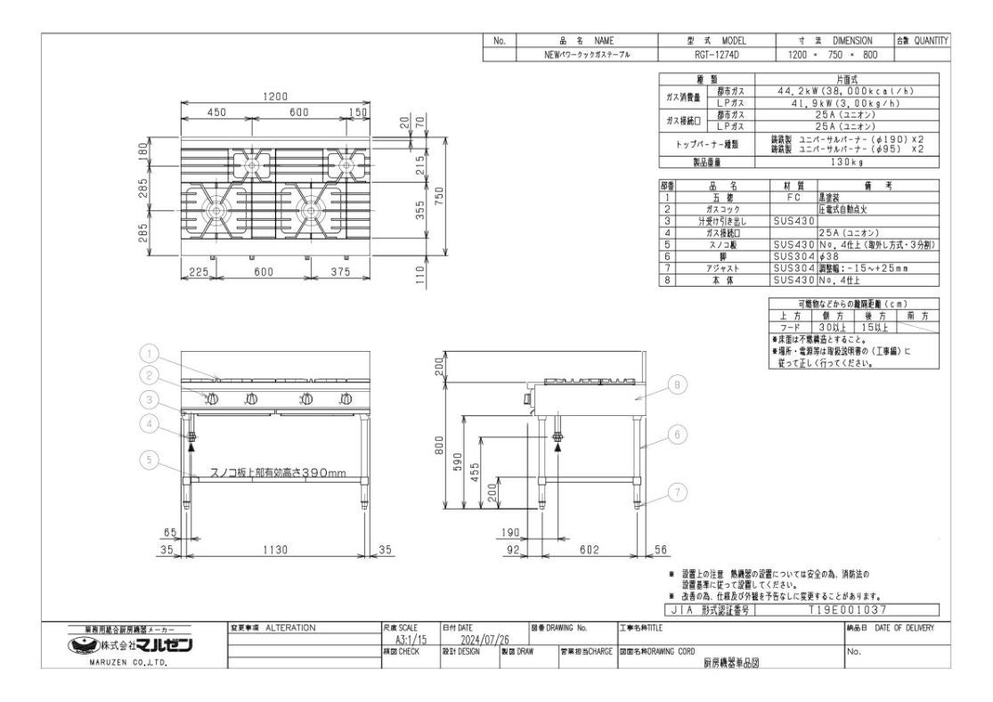 他の画像を見る 【業務用/新品】【マルゼン】ガステーブル 4口 RGT-1274D (旧型式RGT-1274C) 幅1200×奥行750×高さ800mm【送料無料】 定価 ¥ 321,200 (税込)のところ 販売価格 ¥ 172,633 税込 詳細を見る