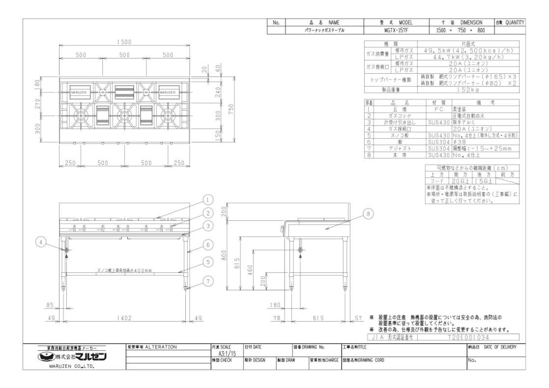 他の画像を見る 【業務用/新品】【マルゼン】ガステーブル 5口 パワークック MGTX-156F(旧型式:MGTX-156E)幅1500×奥行600×高さ800(mm)【送料無料】 定価 ¥ 337,700 (税込)のところ 販売価格 ¥ 183,381 税込 詳細を見る