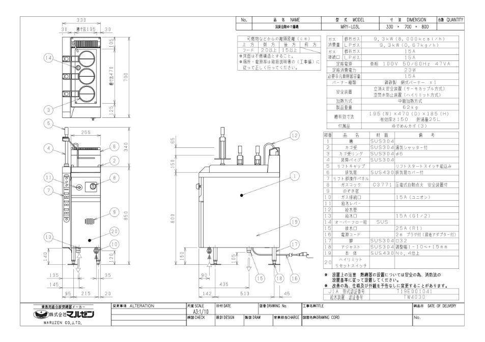 商品名:凉厨自動ゆで麺機W330×D700×H800