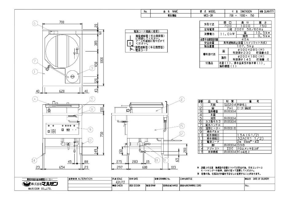 他の画像を見る 【業務用/新品】【マルゼン】電気式うどん・そば釜 丸釜タイプ MES-DR 幅700×奥行1000×高さ750mm【送料無料】 定価 ¥ 1,925,000 (税込)のところ 販売価格 ¥ 1,125,950 税込 詳細を見る