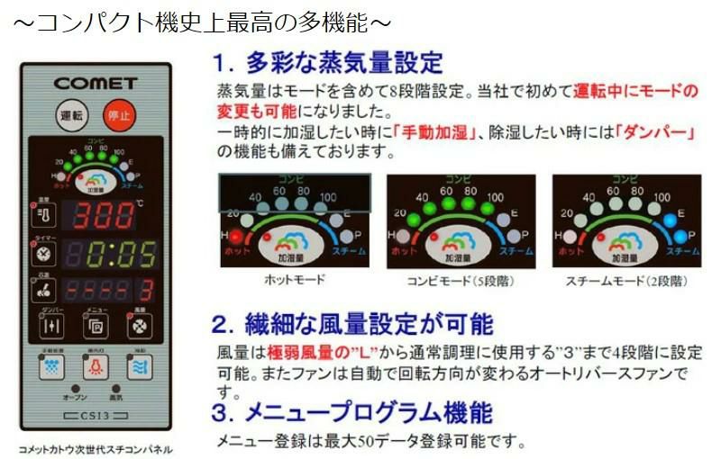 他の画像を見る 【入れ替えキャンペーン付】CSI3-EC2 【コメットカトウ】 電気スチームコンベクションオーブン 幅595×奥行420×高さ410mm (50/60Hz)【業務用/新品】【送料無料】 定価 ¥ 0 (税込)のところ 販売価格 ¥ 613,680 税込 詳細を見る
