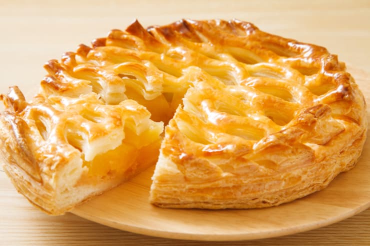 アップルパイは、りんごスイーツの王道です。バターの香り豊かなパイ生地と、シナモン香るりんごフィリングの組み合わせが絶品です。