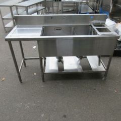【中古】二槽シンク ゴミカゴ付き 水切り付き BGあり 幅1500×奥行600×高さ800 【送料別途見積】【業務用】【川崎店在庫】のレビューを書く