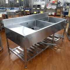【中古】二槽シンク 台付き BGあり 幅1800×奥行800×高さ800 【送料別途見積】【業務用】【新潟店在庫】のレビューを書く